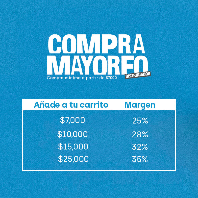 -Los Márgenes de mayoristas serán establecidos en base al volumen de la compra, esto teniendo un margen inicial del 25%